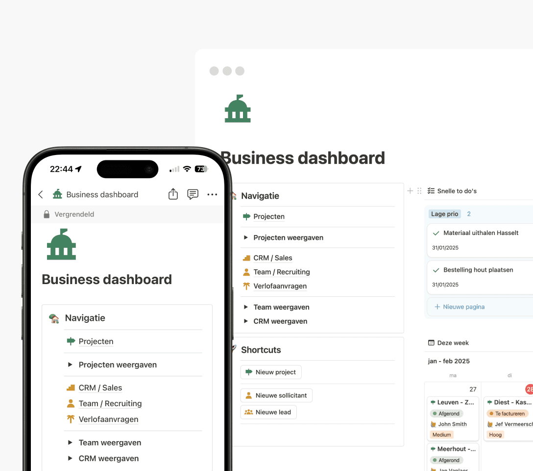 Mijn aanpak is praktisch: wat we bouwen moet je ook daadwerkelijk gaan gebruiken. Geen complexe systemen vol features die je niet nodig hebt. Wel een werkplek die past bij hoe jij werkt, en die meegroeit wanneer dat nodig is.